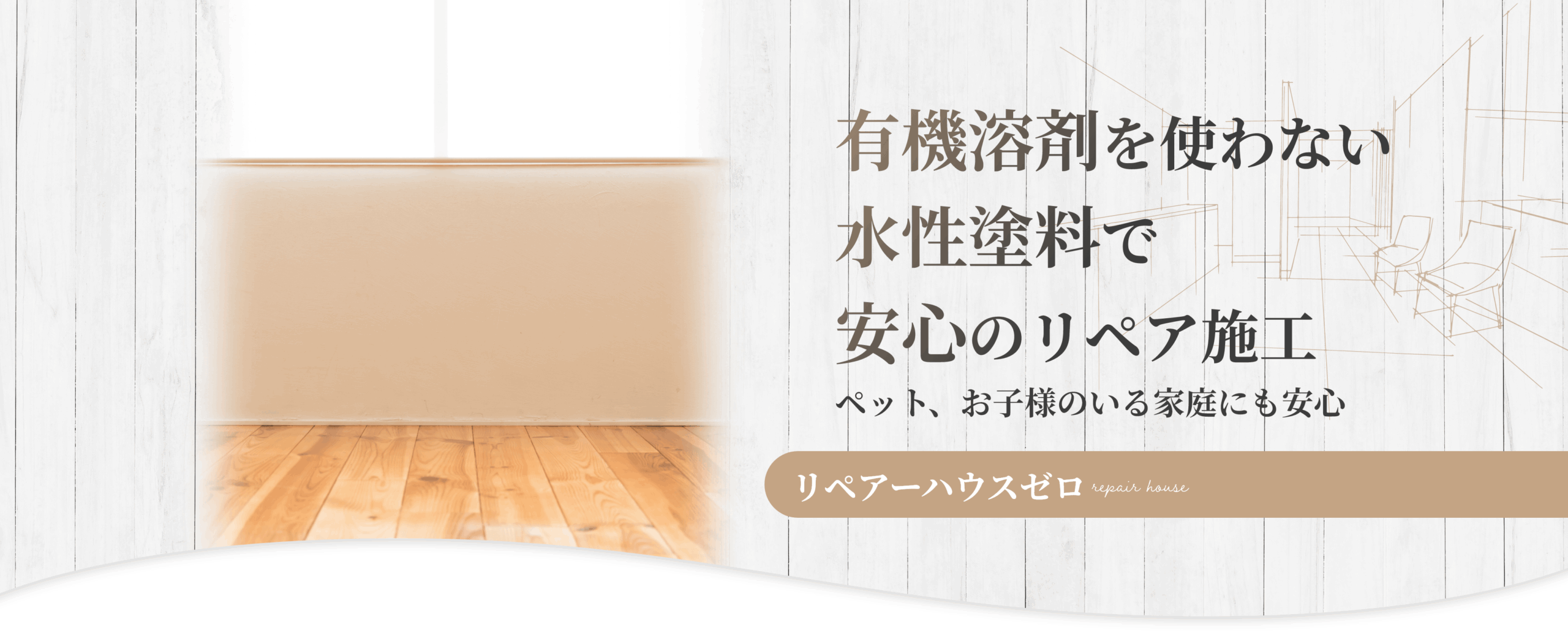 当店ではアルミサッシや一部の木部を除き、フローリングや建具の補修に有機溶剤を使用しない「水性塗料」を導入いたしました。